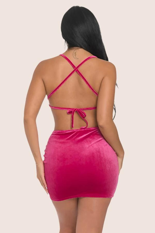 Sasha Rhinestone Accent Velour Tie Back Mini Dress- Black
